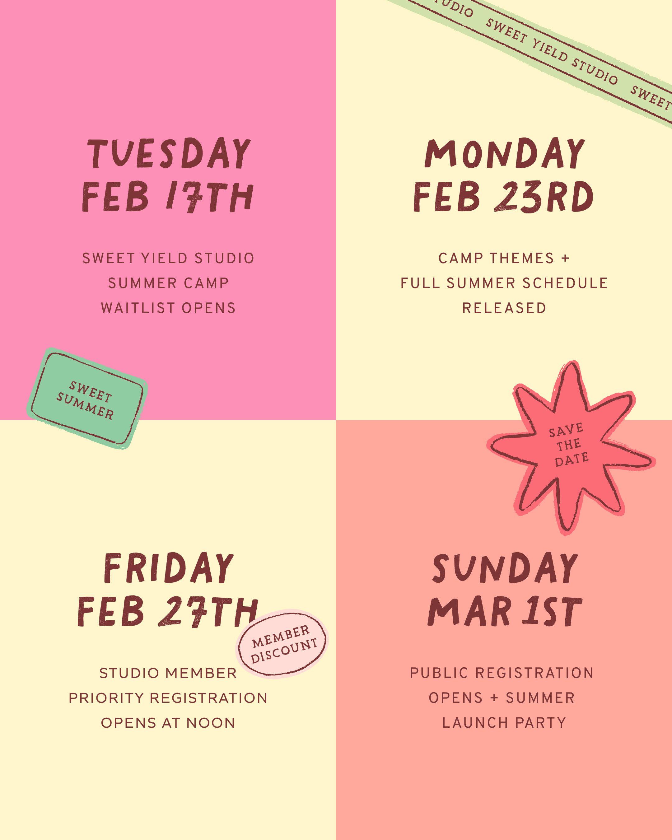Our signature Summer Camps bring all the #sweetyieldmagic into one amazing experience. We’ll learn, craft, dance, move, play, and field trip through each week making memories your child will treasure forever.